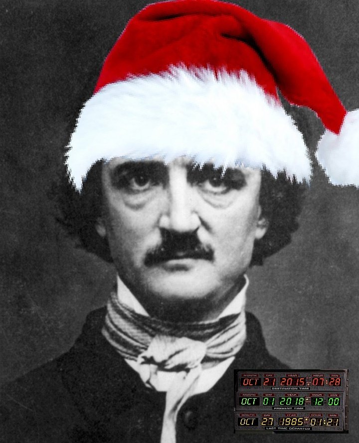 Edgar Allan Poe ✒me pide que en su nombre os desee una muy Feliz Navidad y que os recuerde que disfrutéis mucho con vuestros seres queridos en estas fechas tan entrañables, ya que es posible que sean las últimas Navidades que vea el género humano sobre la faz de la Tierra ⏰☢☣🍾🌲🎅 #RegresoAlFuturoDeEdgarAllanPoe –
